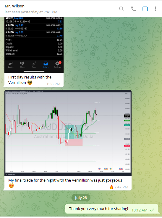 At all times any and all information on, or product purchased from, this website, is for educational purposes only and is under no circumstance intended to provide financial advice. No guarantee is represented from any statements about profits or income, whether express or implied. As no trading system is guaranteed, your actual trading may result in losses. You will at all times accept the full responsibilities for all of your actions, including, but not limited to, trades, profit or loss. You agree to hold forexvermillion.com the site's legal owners, AT and any authorized distributors of this information at all times harmless in any and all ways. By using our product(s) this constitutes your acceptance of our user agreement.